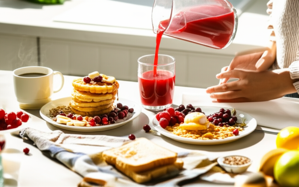 | Mid-morning | 4 oz Pure Cranberry Juice + 4 oz Water | Gentle start, supports hydration |