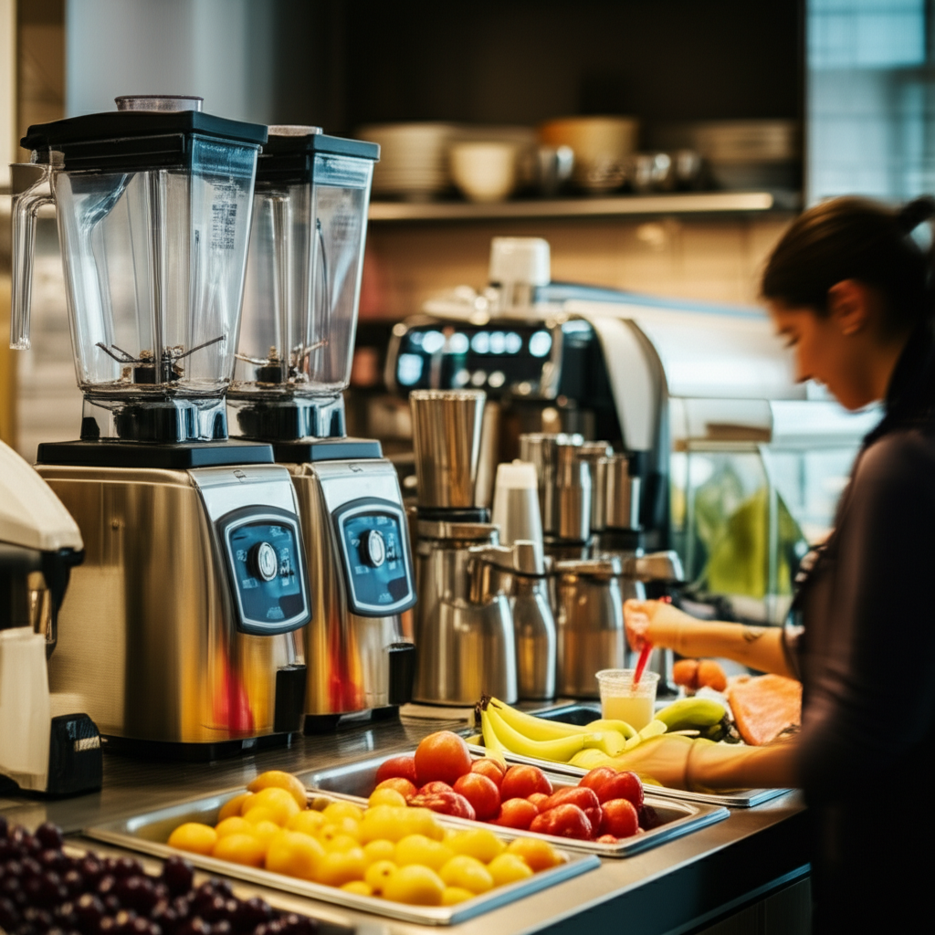 Refrigeration and Storage: You’ll need commercial-grade refrigerators and freezers to store perishable ingredients like fruits, vegetables, and dairy products safely. Ample storage space for dry goods, cups, and lids is also necessary.