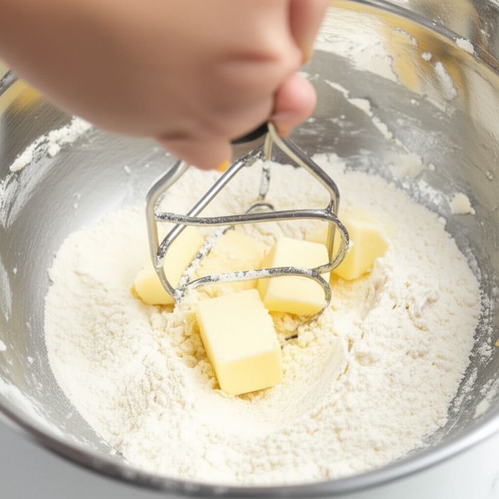 1. Cutting in Fat: This is the most critical use. When recipes call for “cutting in” cold butter or shortening, a pastry blender excels. You add your cold fat (cubed or grated) to your dry ingredients (flour, sugar, salt, leavening). Then, you use the pastry blender to push down and twist through the mixture. The goal is to break the fat into small pieces, roughly the size of peas or small beans, ensuring they are coated in flour.